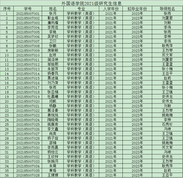 2021级研究生信息